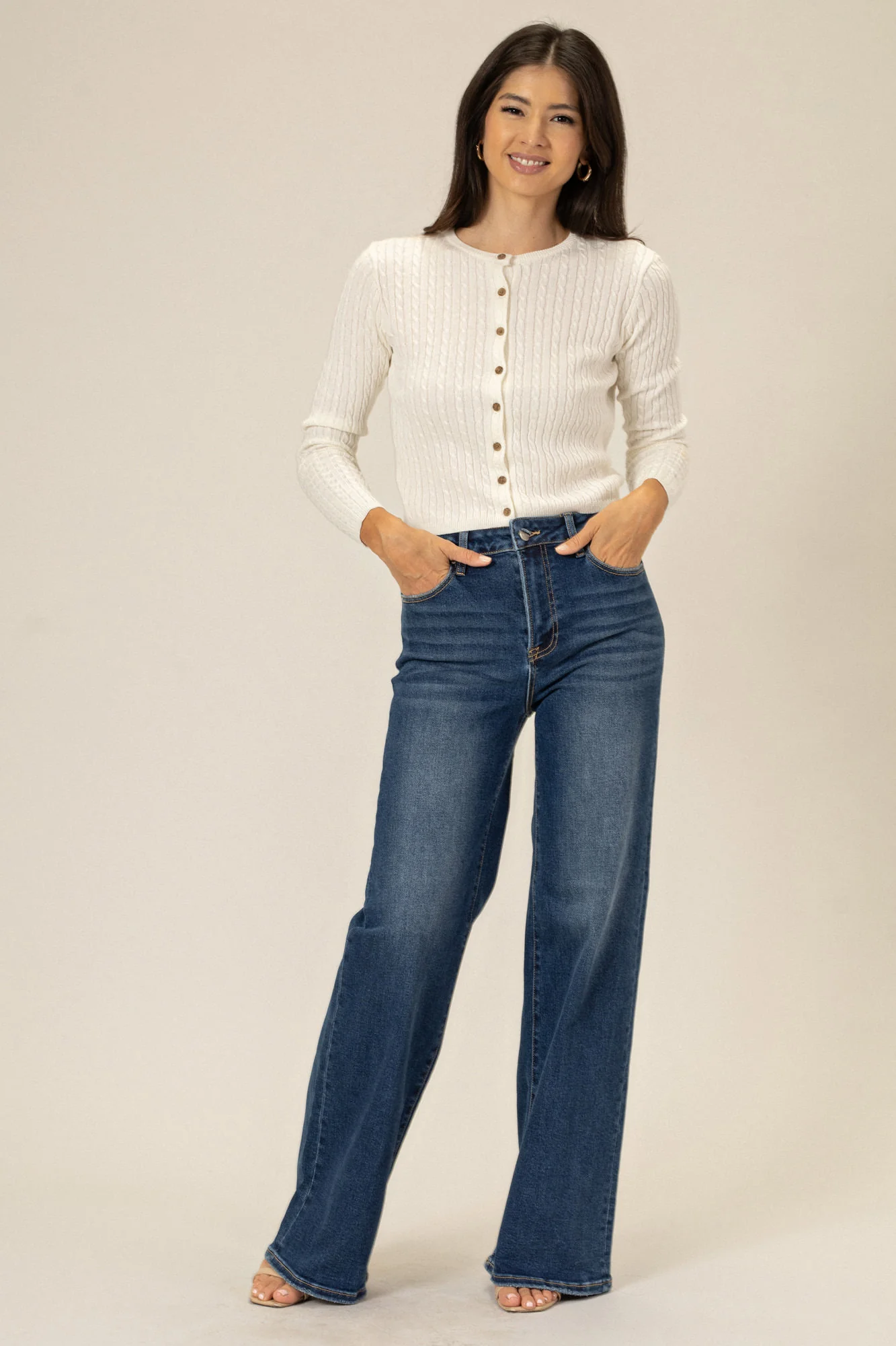 - 5-Pocket with button and zipper closure