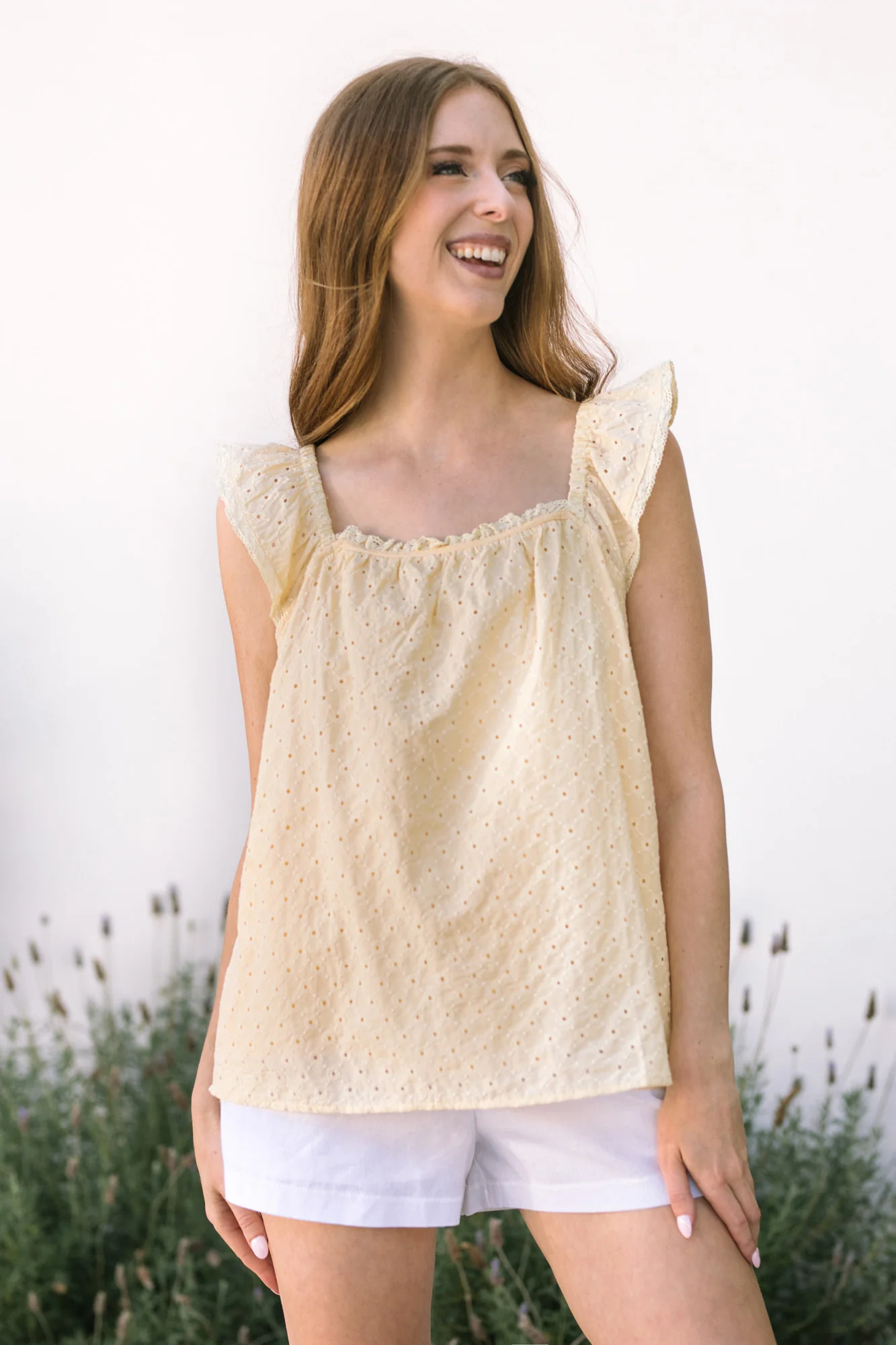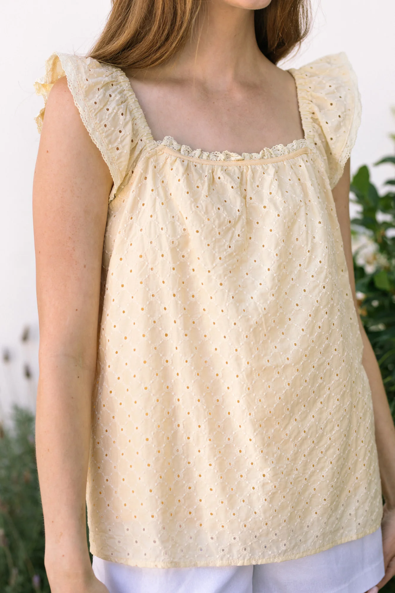 • Eyelet Flutter Sleeve Top