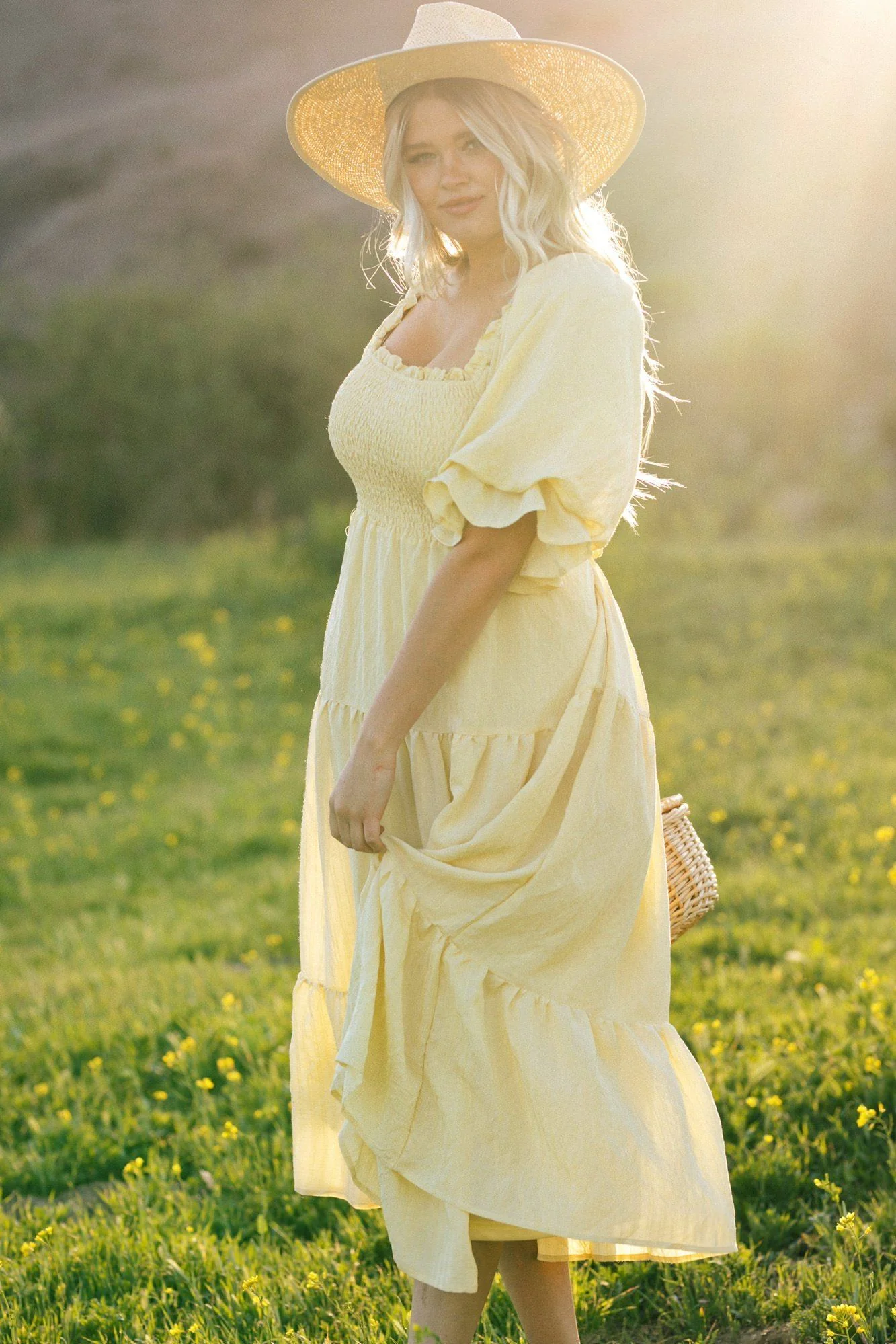 • Puff Sleeve Tiered Midi Dress